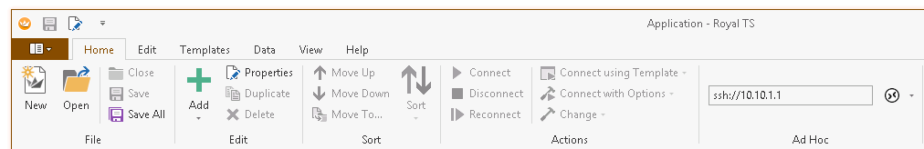With Royal TS (for Windows) V3 and Royal TSX (for macOS) V2.2 we extended the ad hoc connection feature in the ribbon/toolbar to quickly create the correct ad hoc connection based on the defaults.