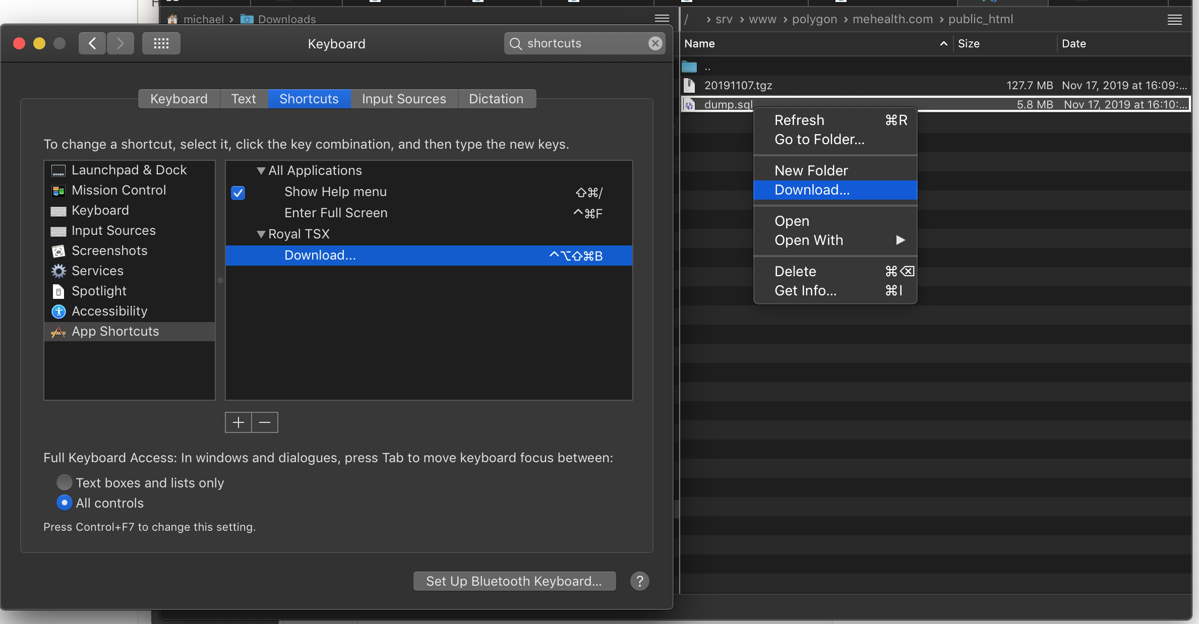 I was even able to assign shortcuts for live editing files in BBEdit, using “Open With->BBEdit” menu name. I think some users might like this information, so I’m attaching a screenshot with the keyboard shortcuts settings to emulate Midnight Commander / ForkLift experience in the File Transfer plugin. It doesn’t seem to affect other tabs, probably due to lack of same name menu items.