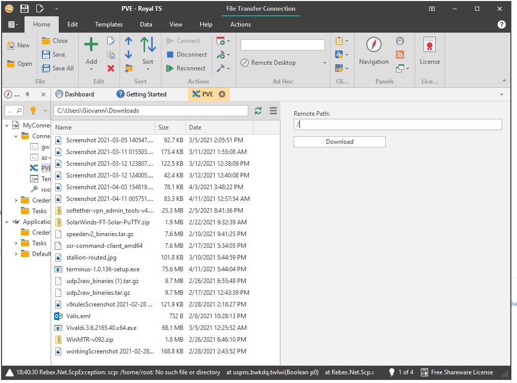 I’m a MobaXterm user and was trying RoyalTS as a replacement, I setup a SCP connection and I see the UI is not displaying the files on the server path - is this intended?