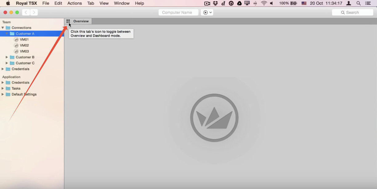 Once you have done that, then switch to the Dashboard by clicking on the Overview tab’s icon: