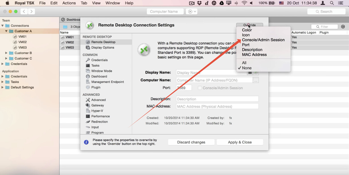 Once you have done that, then you can select the setting that you want to change; in this case, we are going to select “Console/Admin Session”:Once you have done that, then make the change that you want. We are going to enable the “Console/Admin Session” setting:
