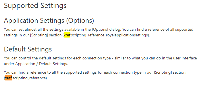All makes sense, the only issue is that the links on that help page to the reference of all the settings seems to be dead/wrong? e.g .(xref:scripting_reference_royalapplicationsettings).