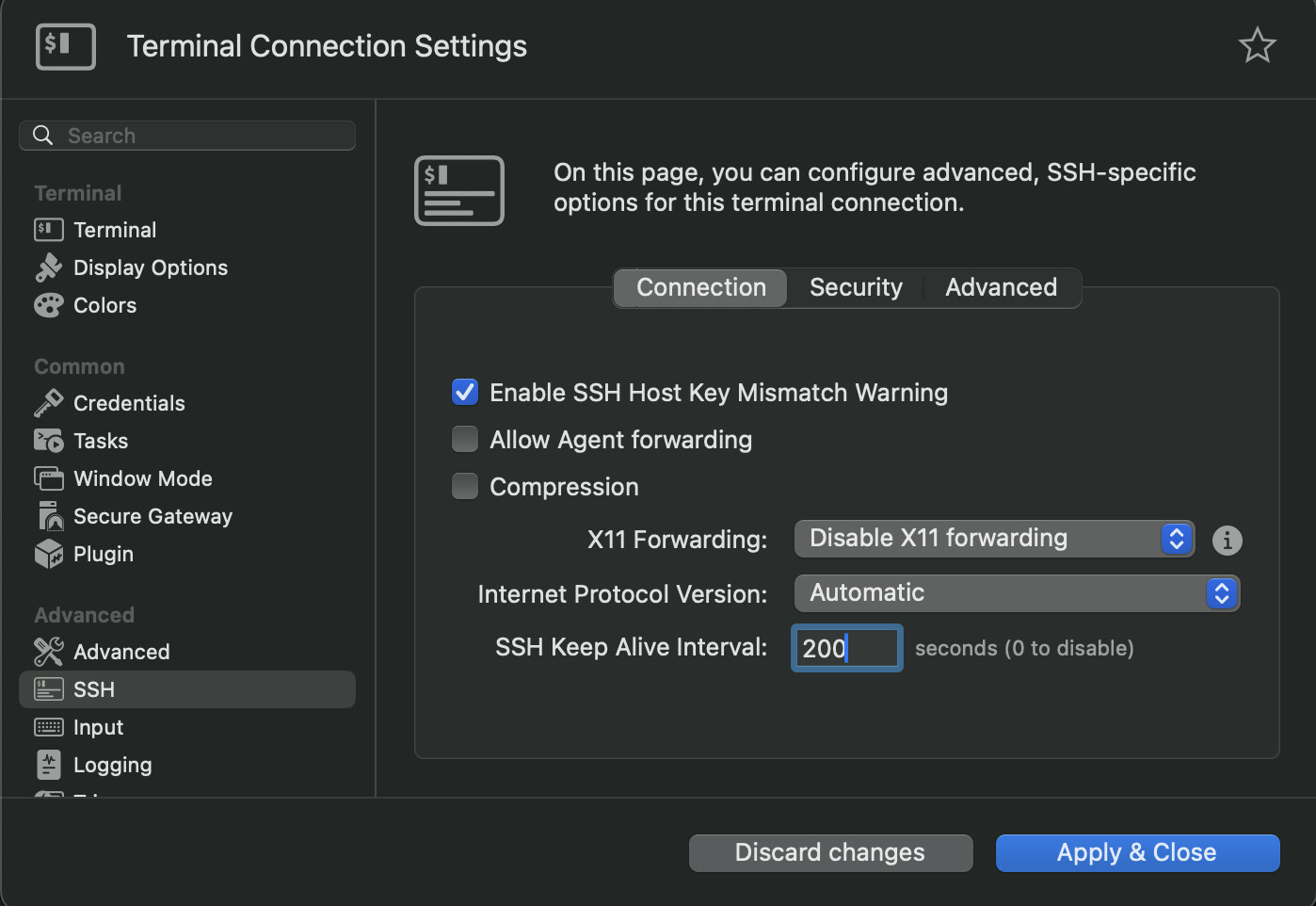 the option can now be found within the “Terminal Connection > Advanced > SSH > Connection” section as shown in the following screenshot: