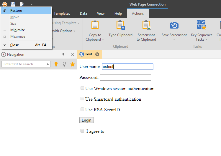 The key sequence enters “estest” in the first textbox and then a context menu pops up on the top left corner of Royal TS. (see screenshot)