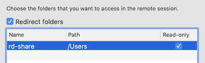 It is possible to define redirected folders for RDP-Connections as “read-only” in Microsoft Remote Desktop for MacOS: