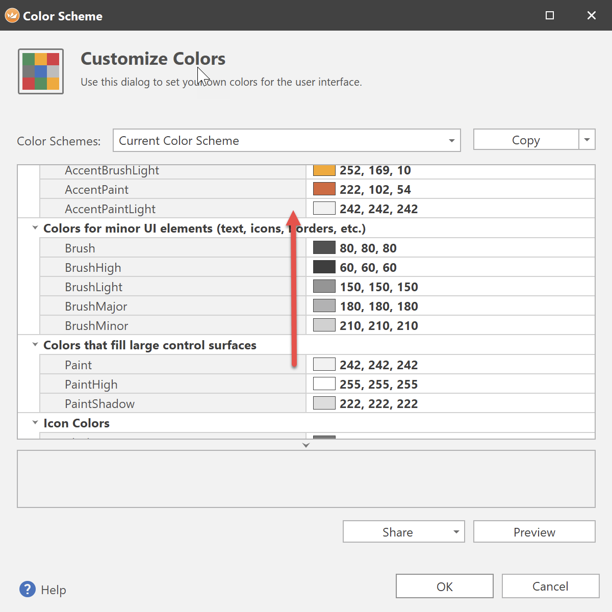 As I said, the UI library doesn’t provide this level of control. You can of course tweak the color scheme in a way that the active caption uses the same color as the inactive caption. But I think you will not be happy with the user experience as it’s not possible to know what panel is active. You can try it yourself by setting the Accent Paint Light color to the same color as the Paint color: