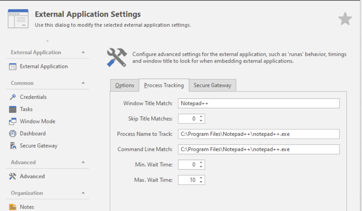 Can you try configuring the “Process Tracking” options, found in the Advanced section of the External Application, as shown in this example for Notepad++: