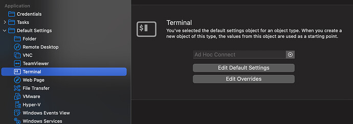 To make sure all future terminal connections have settings configured, please edit the Terminal Default Settings, found in the Navigation Panel under “Application - Default Settings - Terminal”.