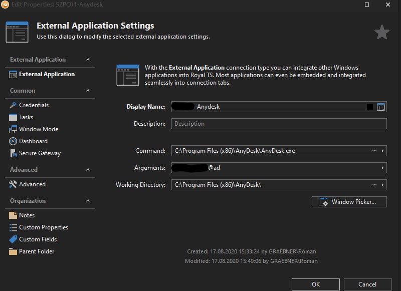danke für den Screenshot und für die Beschreibung wie man AnyDesk integrieren kann. Genau für diese Art der Integration ist eigentlich die External Application - Verbindung da. Es ist schwierig alle erdenklichen Applikationen als “eigenes Plugin” direkt zu integrieren - da kommen wir nicht mehr nach. Wenn es gute SDKs gibt - bevorzugt “Cross-Platform”, dann ist das schon einfacher…