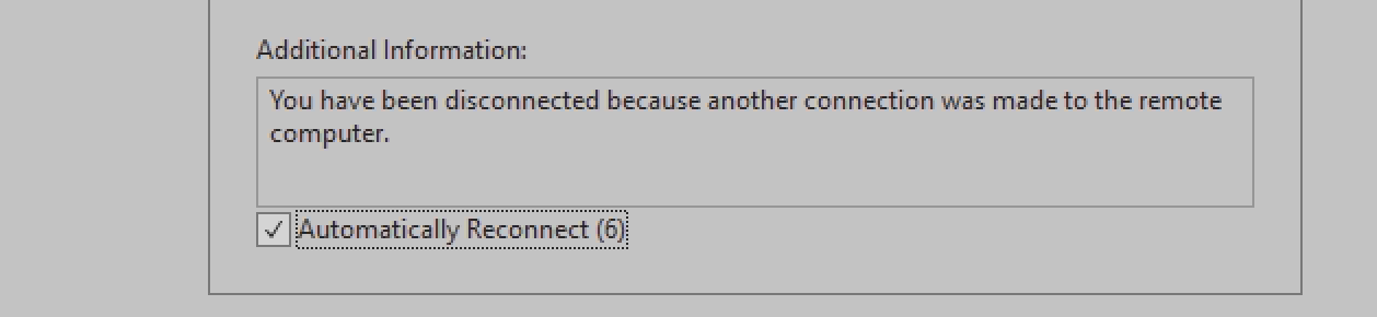 Upon re-establishing networking connectivity, it would be nice to right click on the tab and be able to re-establish connection to every disconnected RDP session. There is already a “disconnect all” option in the right click menu.