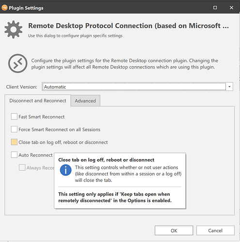 Just an FYI, you can tweak the behavior for RDP in the Plugin Settings: