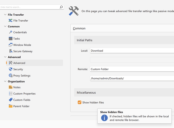 Hi, I have Royal TS version 7 but I don’t see the option “Show hidden files” in Advanced.