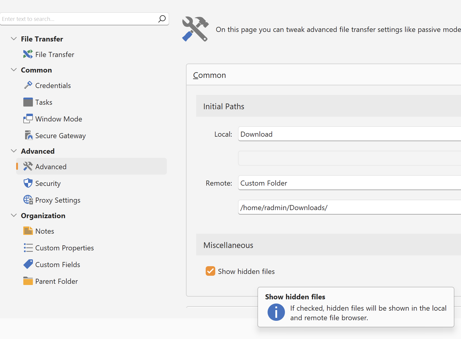 For File Transfer connections, the option can be found in the “Advanced > Miscellaneous” section as shown here: