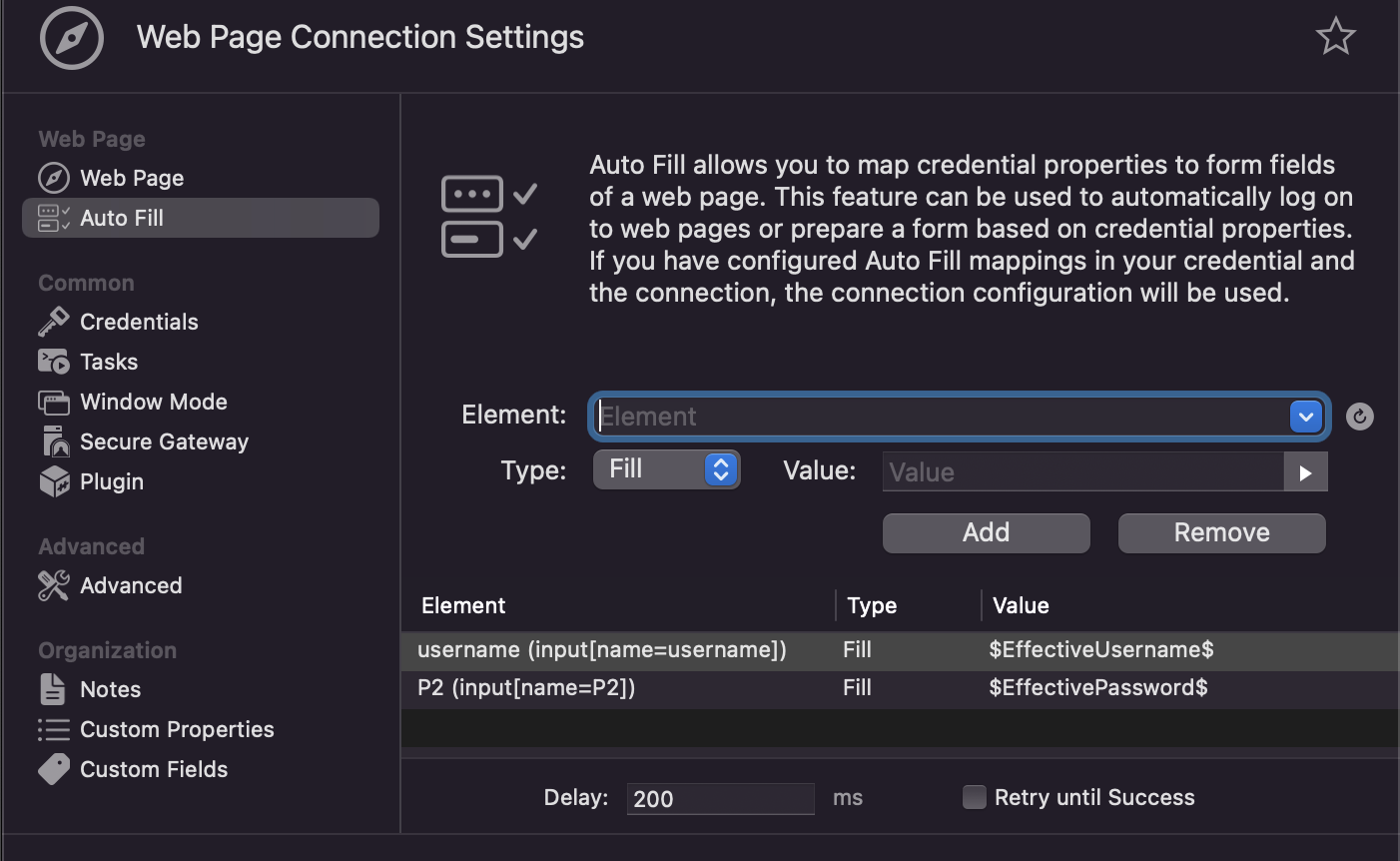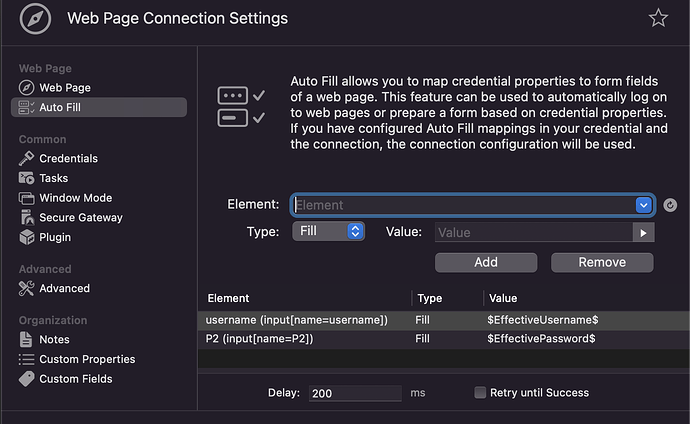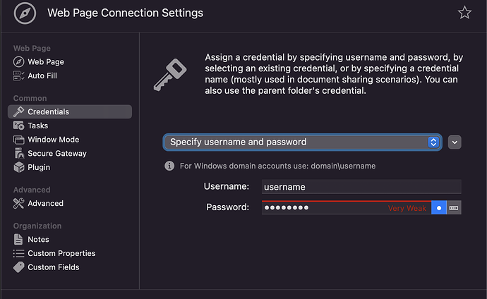 When I then double-click on the web page object within Royal TSX, the fields are filled out correctly
