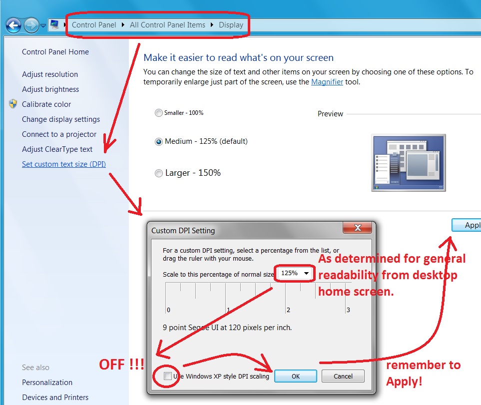 Set windows client DPI appropriately. VERY important to NOT accept “Windows XP style scaling” which can be the default. See attached image.