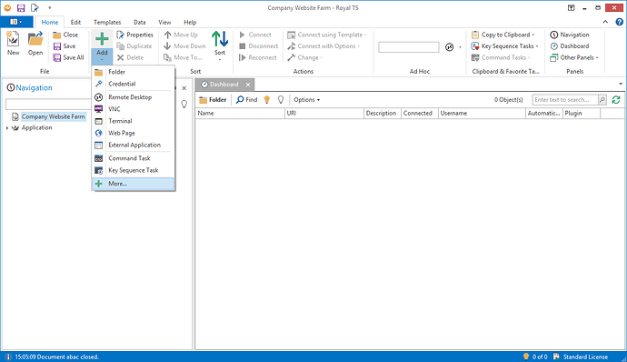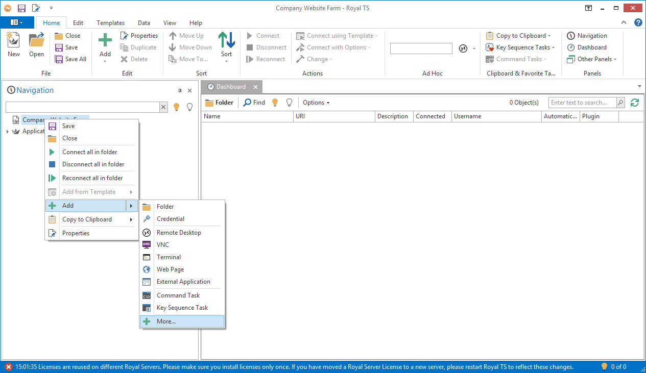 Remark: This tutorial assumes that you use Royal Server and not “Direct Connect”. Royal TS (for Windows) V3 offers another mode where the application is using a direct connection to the managed servers called “Direct Connect”. While it is possible to use this from Windows, we recommend using Royal Server – and here’s why .