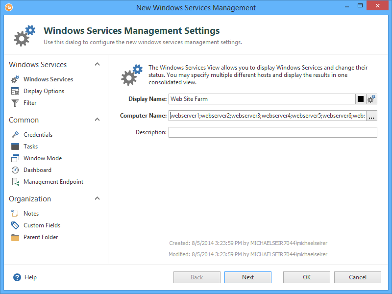 Make sure your Windows Services View is referencing the previously created Management Endpoint (click on Management Endpoint on the left navigation):