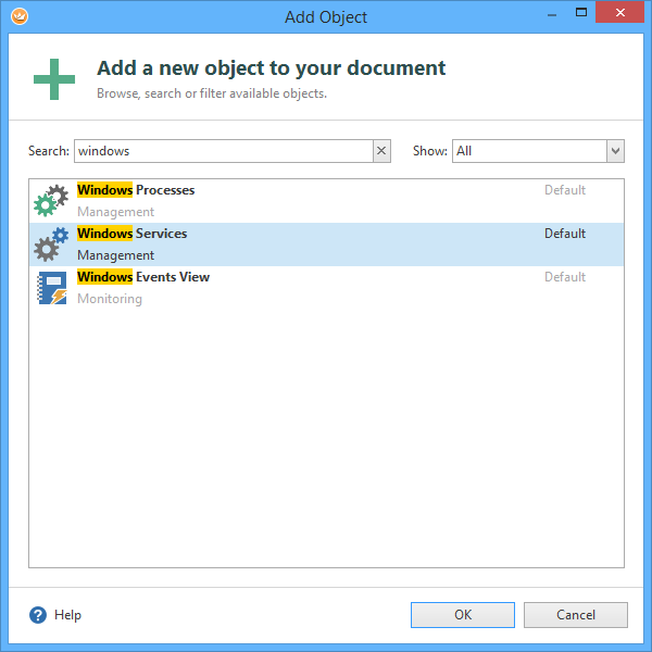 Start by adding a new “Windows Services” view.