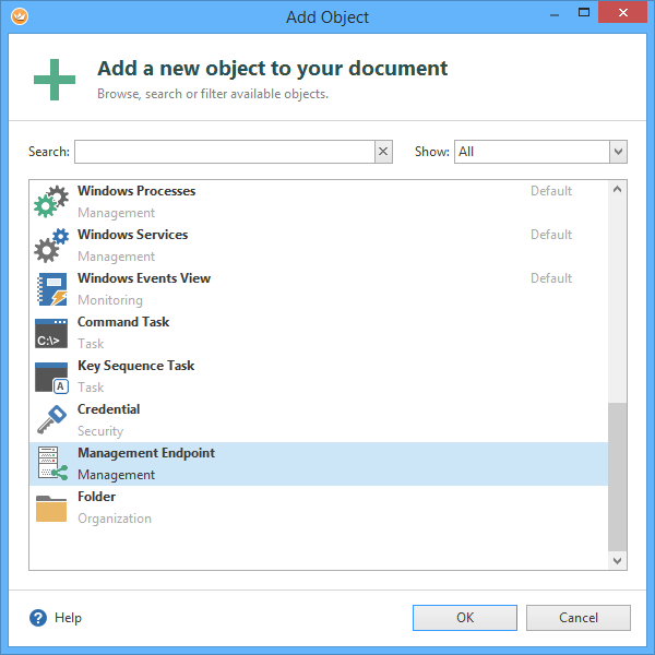 Adding a Management Endpoint via context menu