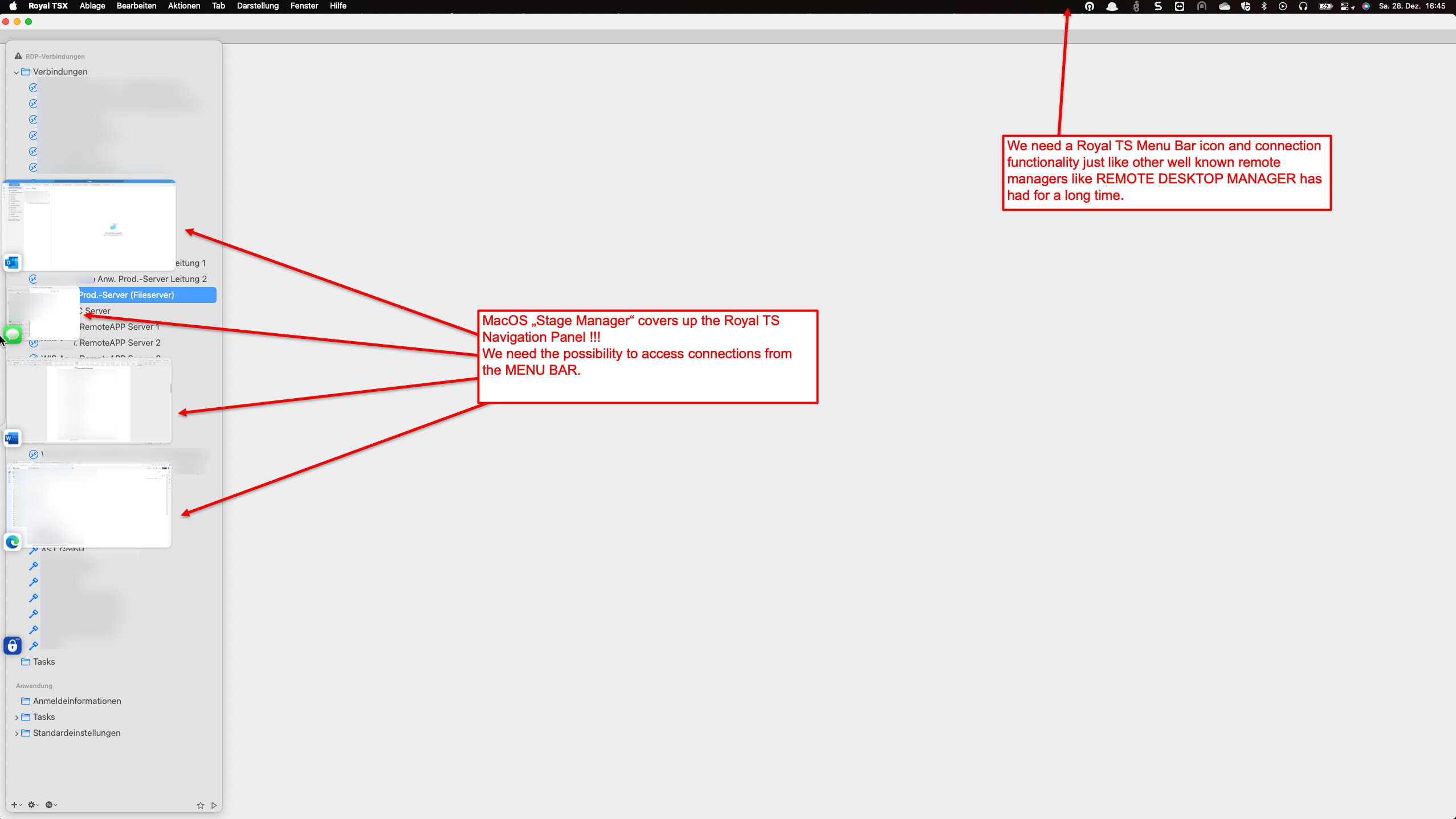 I know that you can right click the dock icon and open saved sessions from there, but is it possible to add a menu bar icon in Mac OS with the same functionality? It is just more intuitive and also more what I am used to for work flow.