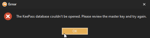 Every attempt ends with error: “The KeePass database cound’t be opened. Exception has been thrown by the target of invocation.”.
