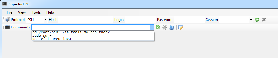 Please see the attached picture. It’s a drop down list of last previous commands/or common commands, I can’t tell for sure. I would have to test. This has come in handy sometimes. I haven’t used SuperPuTTY in a long time but this list I think it’s max is 9-10 items in here, which I think is sufficient.