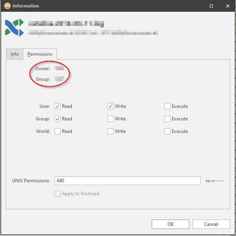Derzeit ist es in Royal TS offenbar nicht möglich, Besitzer und Gruppen von Linux-Ordnern oder Dateien direkt im Tool zu editieren (wie bei WinSCM) - sieh auch Anhang.