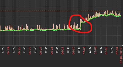 The attached screenshot shows the memory usage increasing over time. The red circle indicates when the application was left open after a software update and within three days the memory usage hit our alarm threshold.