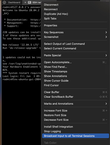 Also, pasting a clipboard (for example multiple commands) to all (active) broadcast I am not sure if it is working properly.