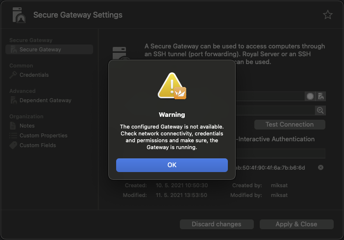 Only small issue is when I try to test newly created nested gateway, because I’m getting error message that configured gateway is not available. But when I use this gateway, everything works fine. ![]()