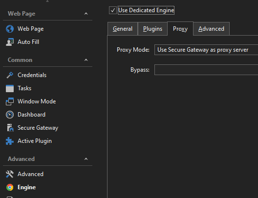 I’ve attempted to use a Secure Gateway with a dedicated engine and the ‘Secure Gateway as a proxy server’ mode without success. I’ve tried a few different variations of that. I either get a ‘Connection attempt was refused’ or ‘An operation timed out’ message in the embedded browser window. I also had a quick look at using the External Application feature with Secure Gateway but no success there either.