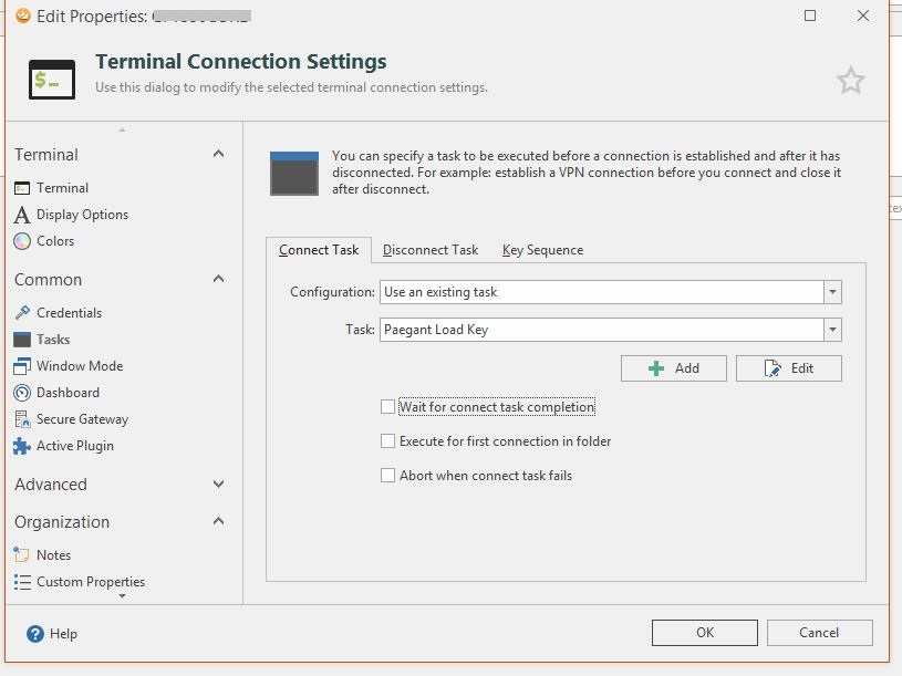 For each connection I have to manually load the key into an ssh agent (pageant, ssh-agent, etc.), retrieve the password and apply to unlock the key, all before using the ssh connection in TSX. TSX should determine if the key associated with the connection is loaded into an agent. If not, load the key using the stored key and password, then complete the connection request.
