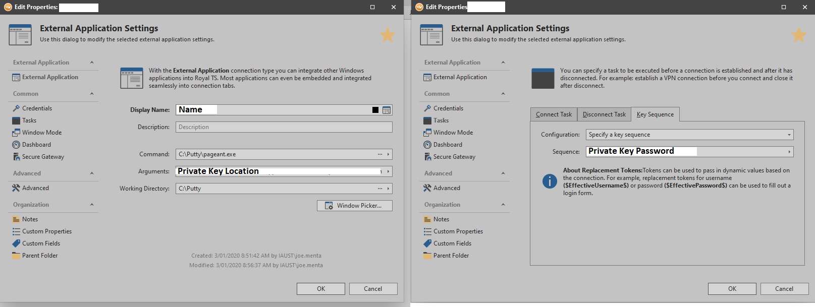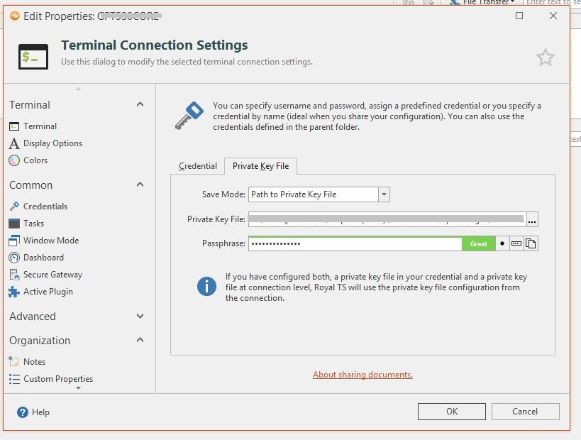 Basically, i want to be able to load the file specified in Royal TS under the “Private Key” setting into Pageant.exe or equivalent application. The key is password protected, so when prompted i would like the RTS to enter the password so the key is loaded and active.