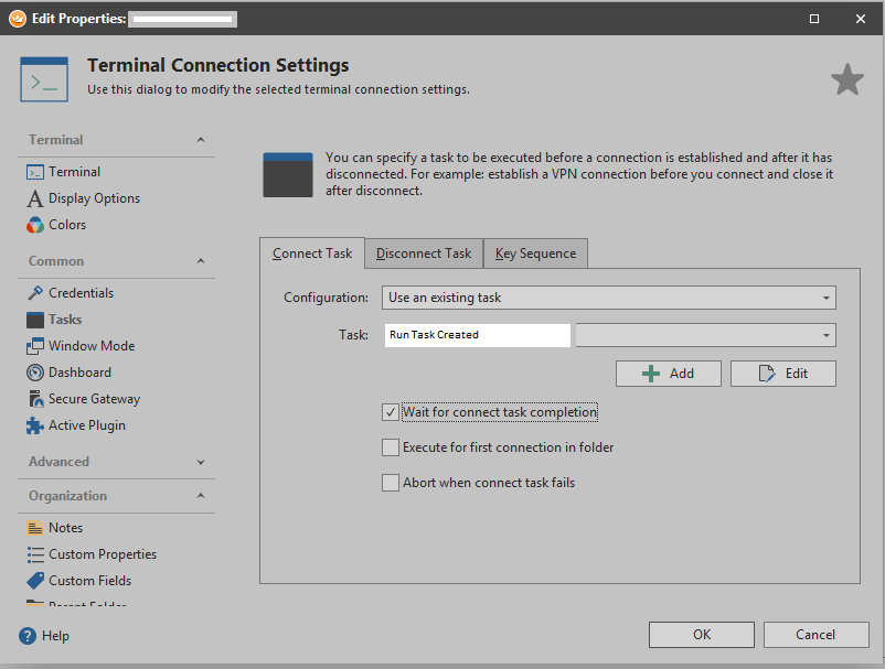 I see that you haven’t enabled the option “Wait for connect task completion”. If you check that, would it work then?