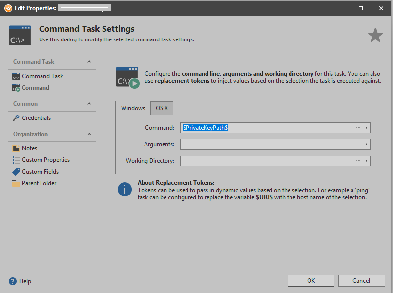 For the “Command” I point it to the $PrivateKeyPath$ specified in the terminal session. (this is determined by the application in its nested Folder.See below for folder structure)