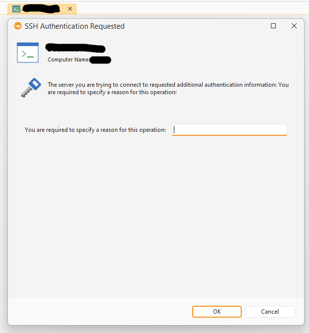 We need a way to prompt a user, for stuff besides a creds. My company is using PSM now, and is requiring reason codes. It doesnt have to be anything major, simple prompt like rebex does for additional details. Should provide a way to give a simple prompt, and then be a simple text feed back that can be used temporarily or to set a variable for that specific usage. Would also be nice to have it kind like the command task where it can be asked for once per folder.