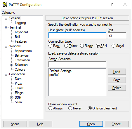 I have attached screenshots and HKEY_CURRENT_USER\Software\SimonTatham\PuTTY\Sessions\profile1