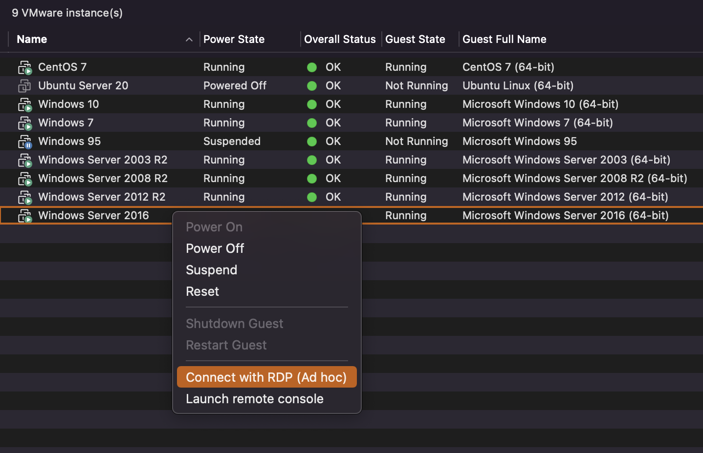 It would be an awesome addition to be able to right click a VMware instance (from a VMware connection) and be able to RDP to it, you do get the option to launch the VMware remote console, but being able to link each instance to an RDP would be super helpful.