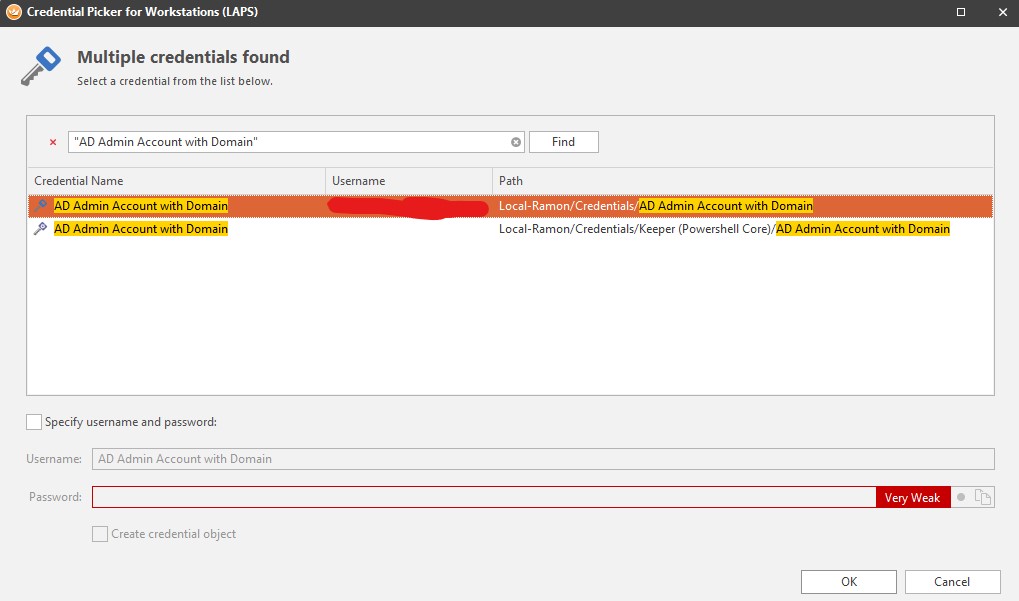 I’m working on a Dynamic Folder script in PowerShell that is used to connect to computers using Windows LAPS credentials. I create a Dynamic Credential and assign it to every connection.