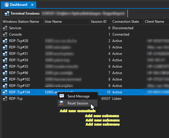 When monitoring a lot of terminal-servers based on Windows 2012r2 or 2016 RDS deployments, it would be really timesaving to be able to shadow active sessions shown in the Dashboard Tab by right-clicking the session to shadow.