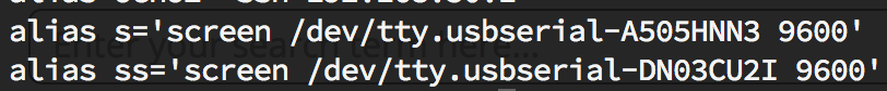 Something like “/dev/tty.usbserial-*” which would either select my “tty.usbserial-A505HNN3” or “tty.usbserial-DN03CU2I” adapter based on which one is actually connected and which I have on me on that day.