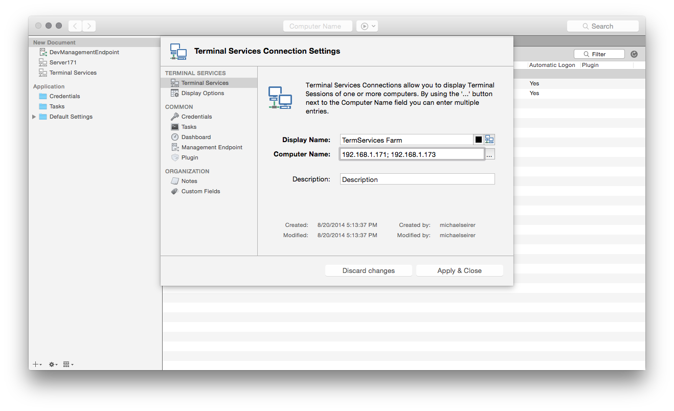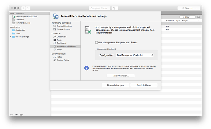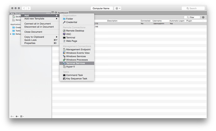 Finally you can manage your Terminal Services from macOS as well. Royal TSX V2 (for macOS) is introducing a new connection Type: Terminal Services: