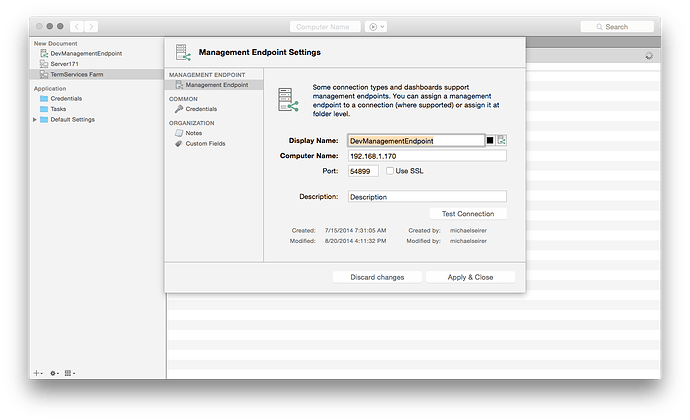 The “Test Connection” button does a basic network test to confirm whether or not Royal TSX can reach Royal Server.
