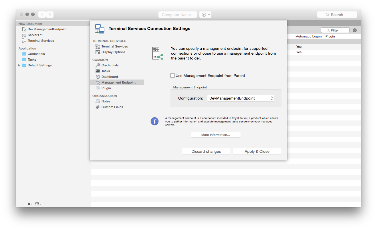 - Using Royal TS/X to access Royal Server