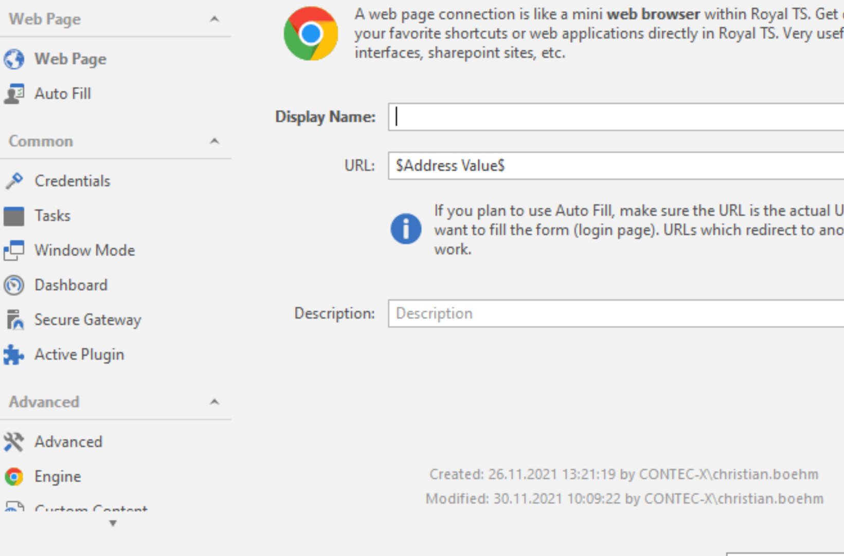 Is It possible to reference to a custom value in a adress field like the one shown below, or ssh/ftp?