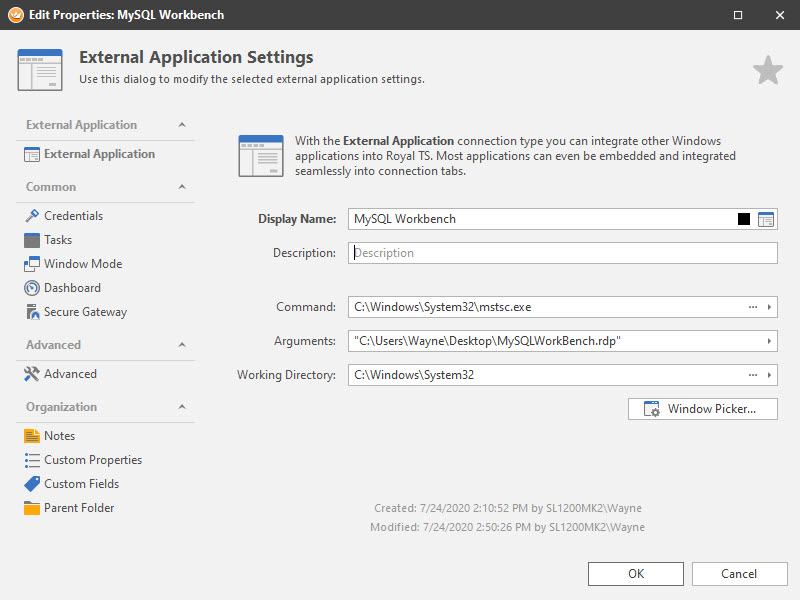 I’ve looked for a solution and tried quite a few things, but can’t find an answer. Is it possible to launch and embed RDP RemoteApps within Royal TS? We have a few legacy applications that we serve to users using RemoteApp and would like to integrate those into Royal TS if possible.