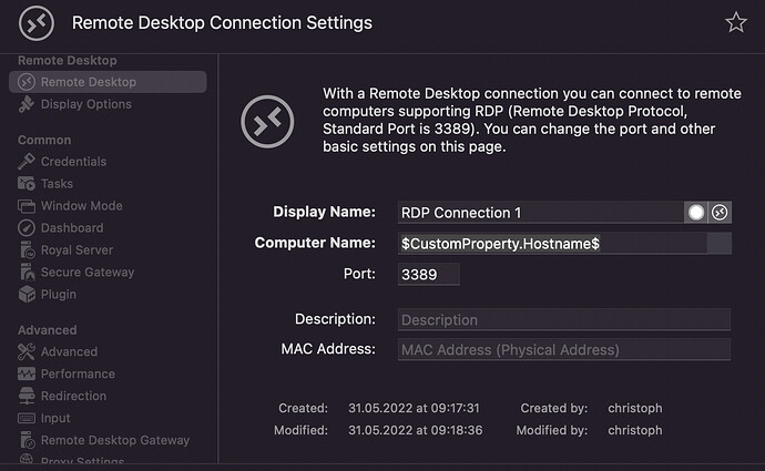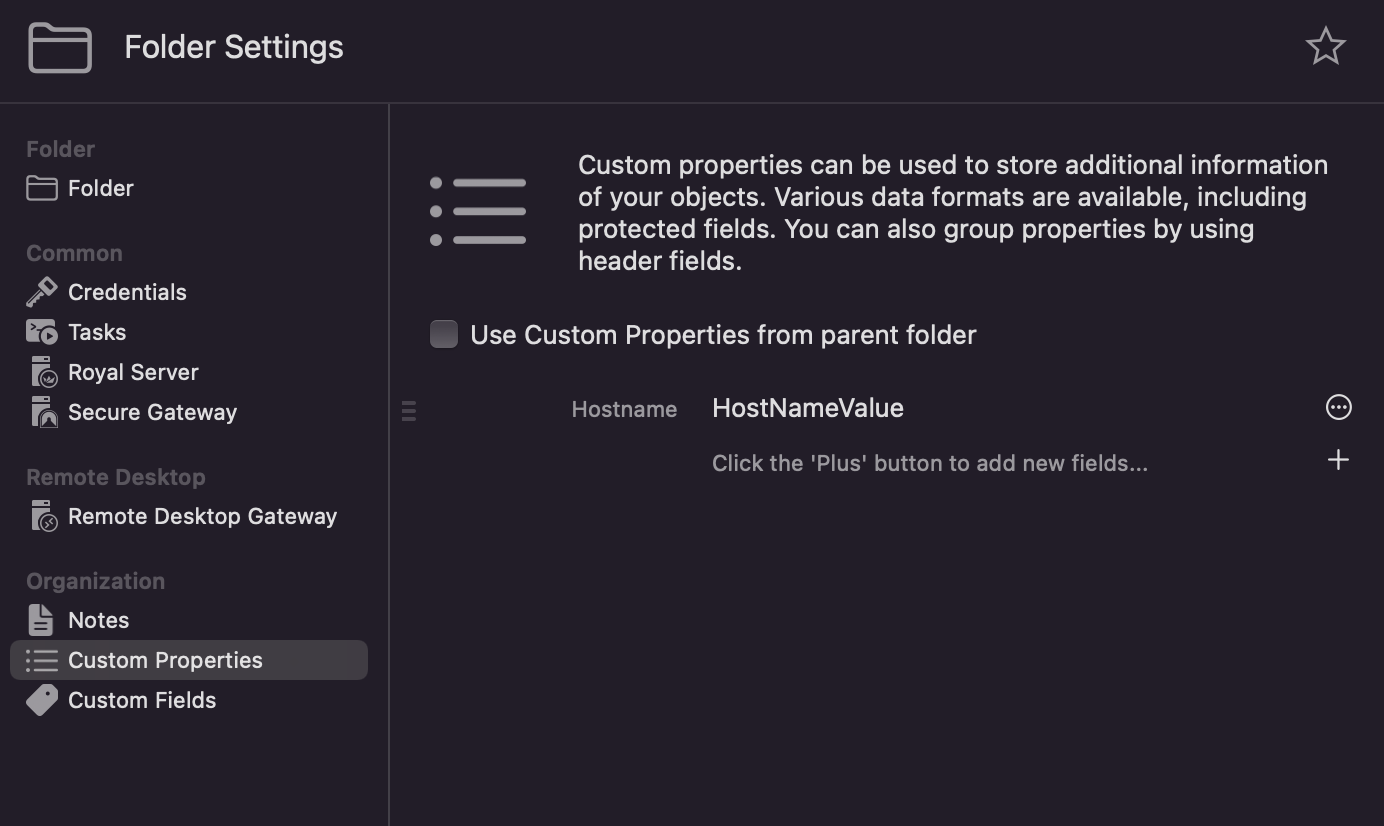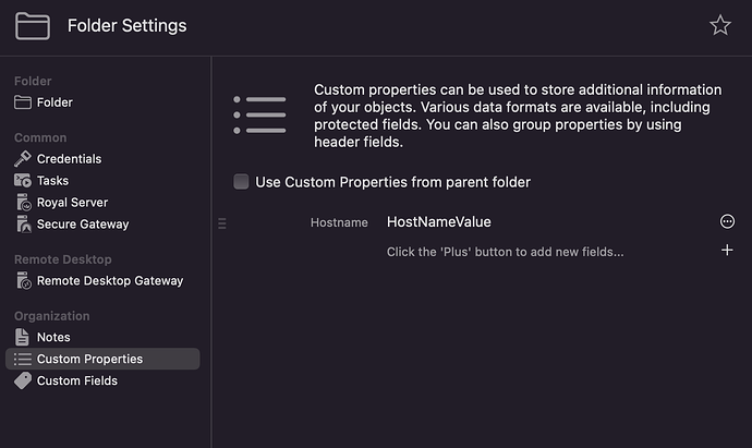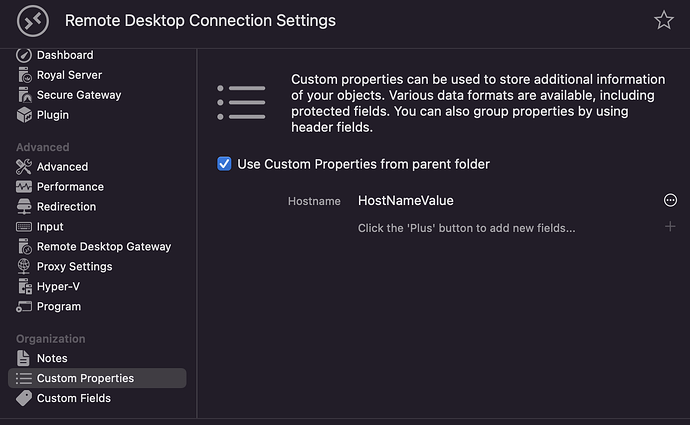 Afterwards, open the properties of your (RDP) connection and enable the “Use Custom Properties from parent folder” setting: