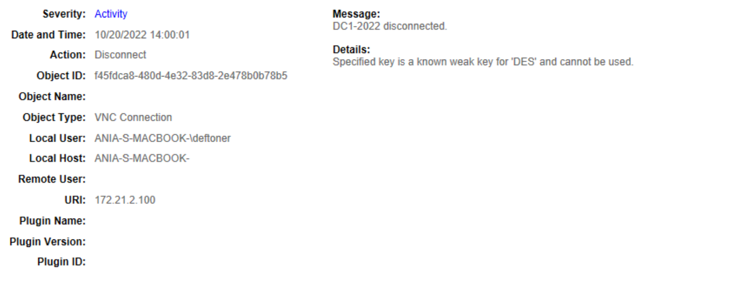 Getting the below event in the log. I am trying to connect to an Apple device. I can connect fine with ultravnc or vncviewer.