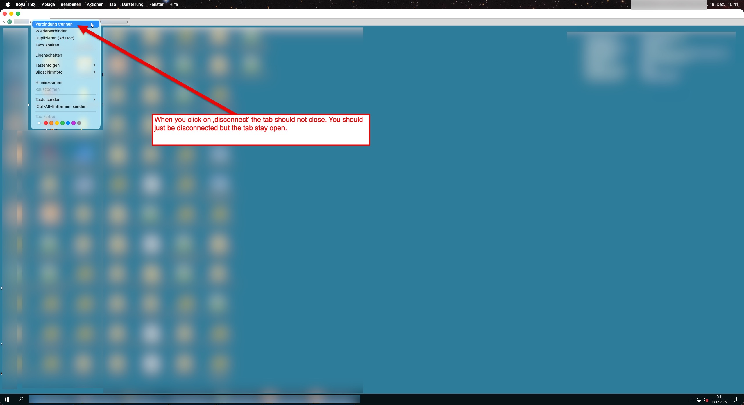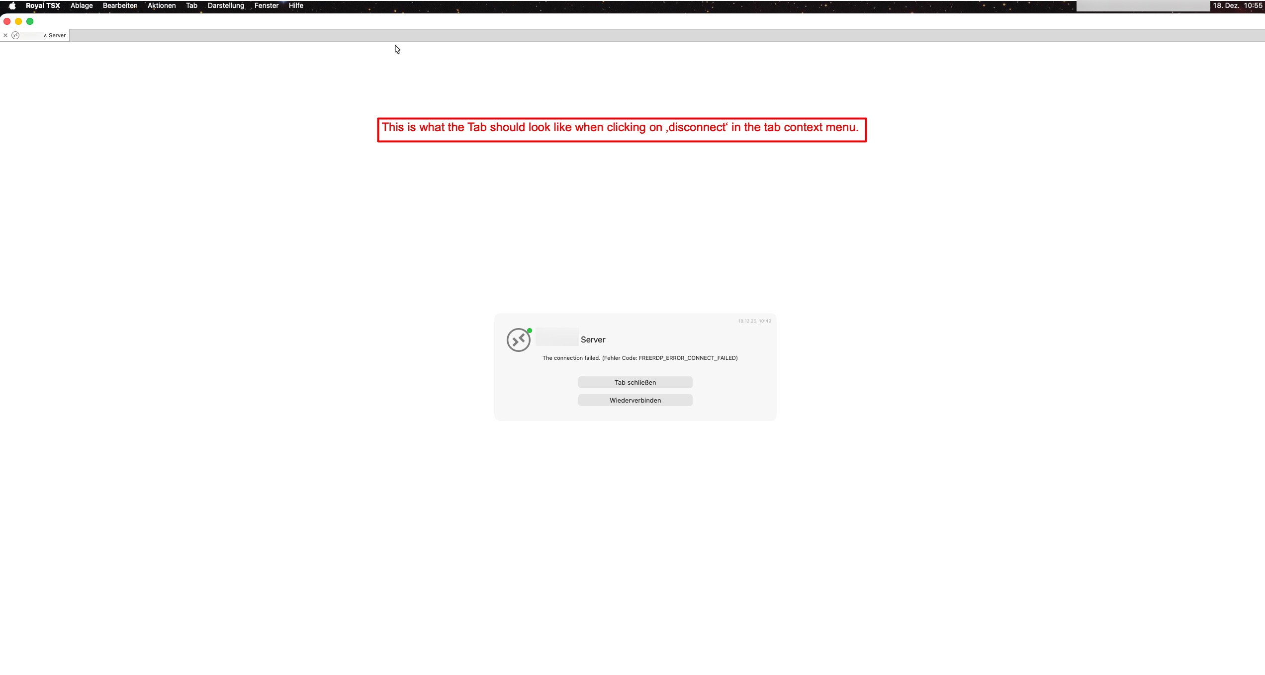 when you click on ‚disconnect‘ in the tab context menu, the tab should not close, it should only disconnect.