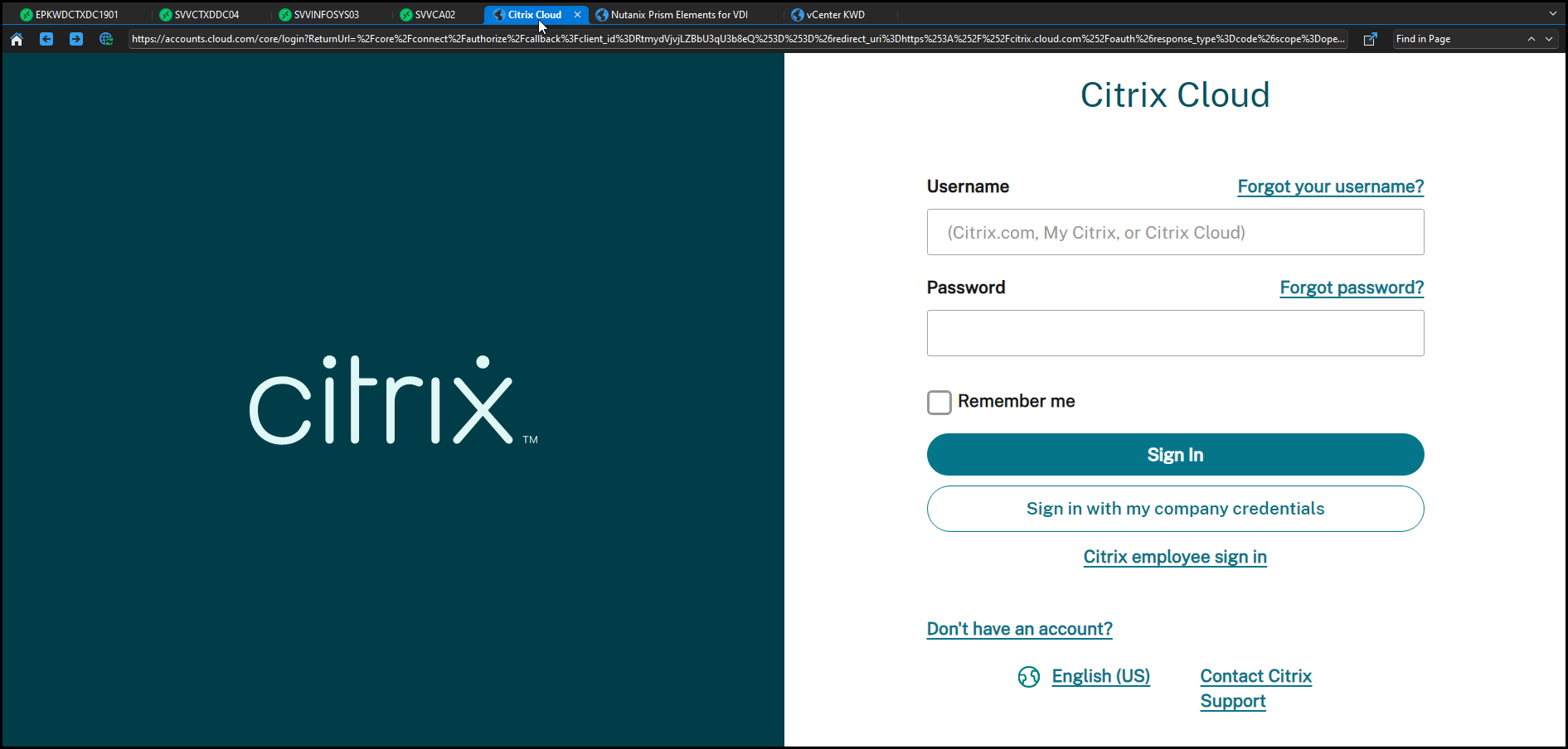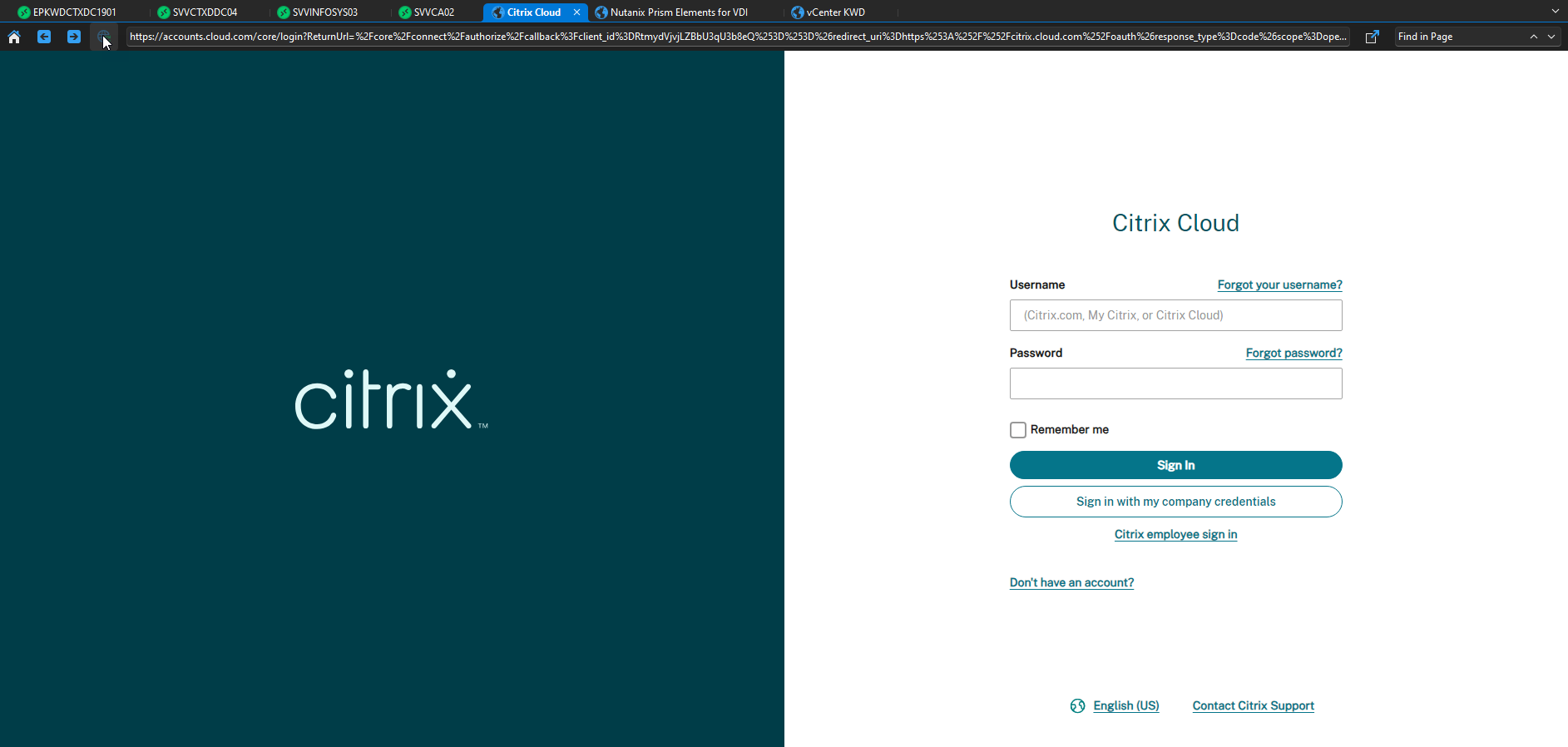 Here is a Citrix Cloud login page as well. This is before: